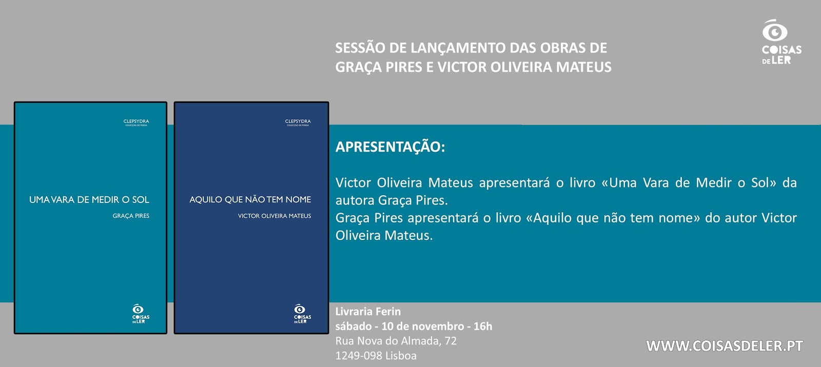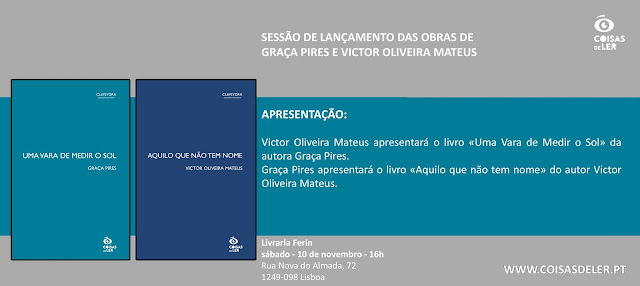 Esta sessão de lançamento, juntamente com o belíssimo livro do Victor Oliveira Mateus "Aquilo que não tem nome", fica à espera que nos deem o prazer da vossa presença. Obrigada.